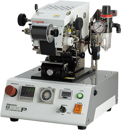 ホットスタンプ式のプリンターは金属などのコーティング層を形成して作られるホットスタンプ箔を利用し、